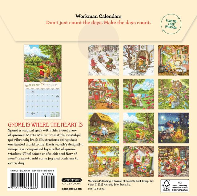 - GNOME SWEET GNOME: A tiny crew of gnomes brighten each month with woodland animals, mushrooms, and wildflowers, plus tidbits of gnome wisdom: Find solace in the ebb and flow of small tasks.