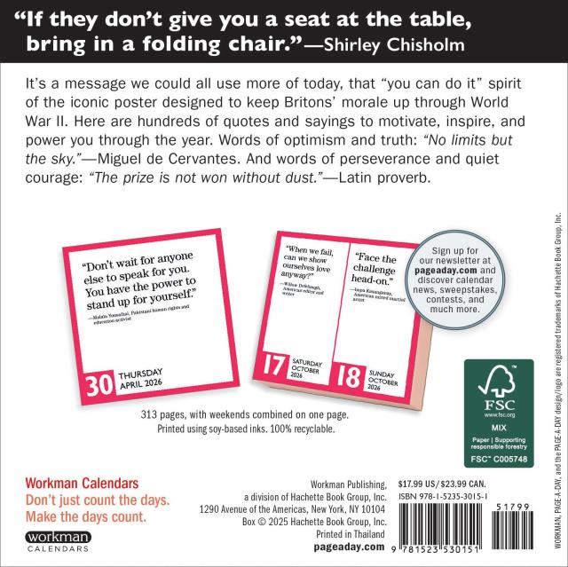 - STIFF UPPER LIP: We could all use more of the “you can do it” spirit of the iconic poster designed to keep Britons’ morale up through World War II. This calendar contains hundreds of quotes and sayings to motivate, inspire, and power you throughout the year.