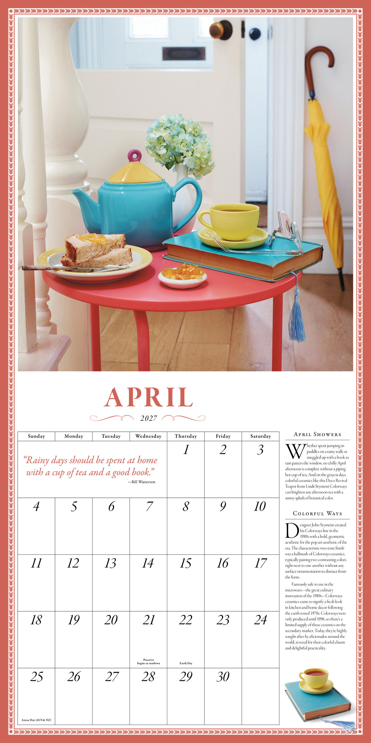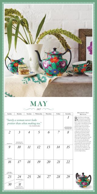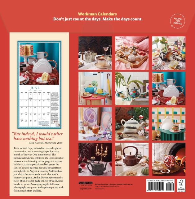 • TIME FOR TEA: This twelve-month tribute to the lovely ritual of afternoon tea features a unique vintage teapot on a gorgeously arranged table for every month of the year. Quotes and captions offer fascinating information.
