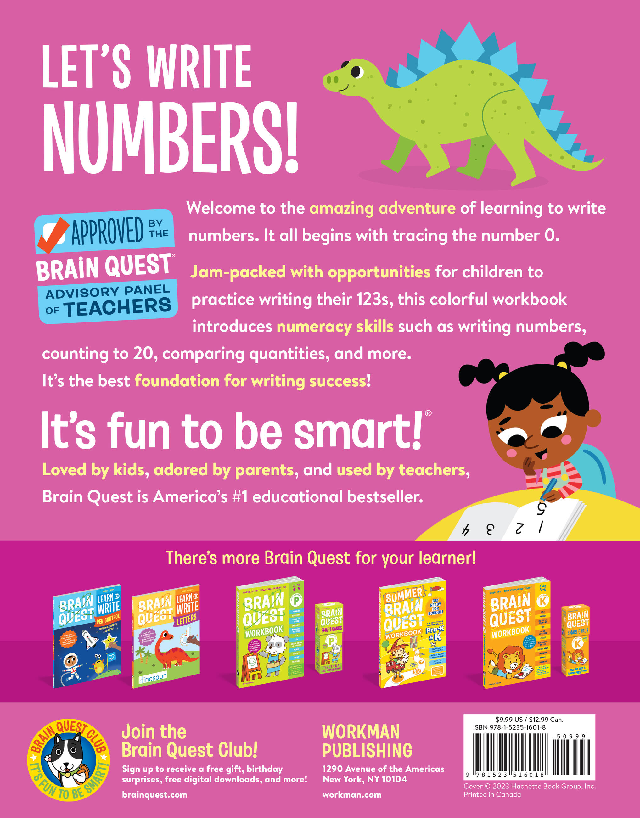 In Brain Quest Learn to Write: Numbers, children ages 4 and up practice their penmanship while learning to write numbers 0-20. This workbook also introduces them to early numeracy concepts like recognizing, counting, and comparing numbers. Each workbook page includes engaging illustrations, multiple practice exercises, and fun activities that give children ample opportunity to master the content and experience the joy of learning.