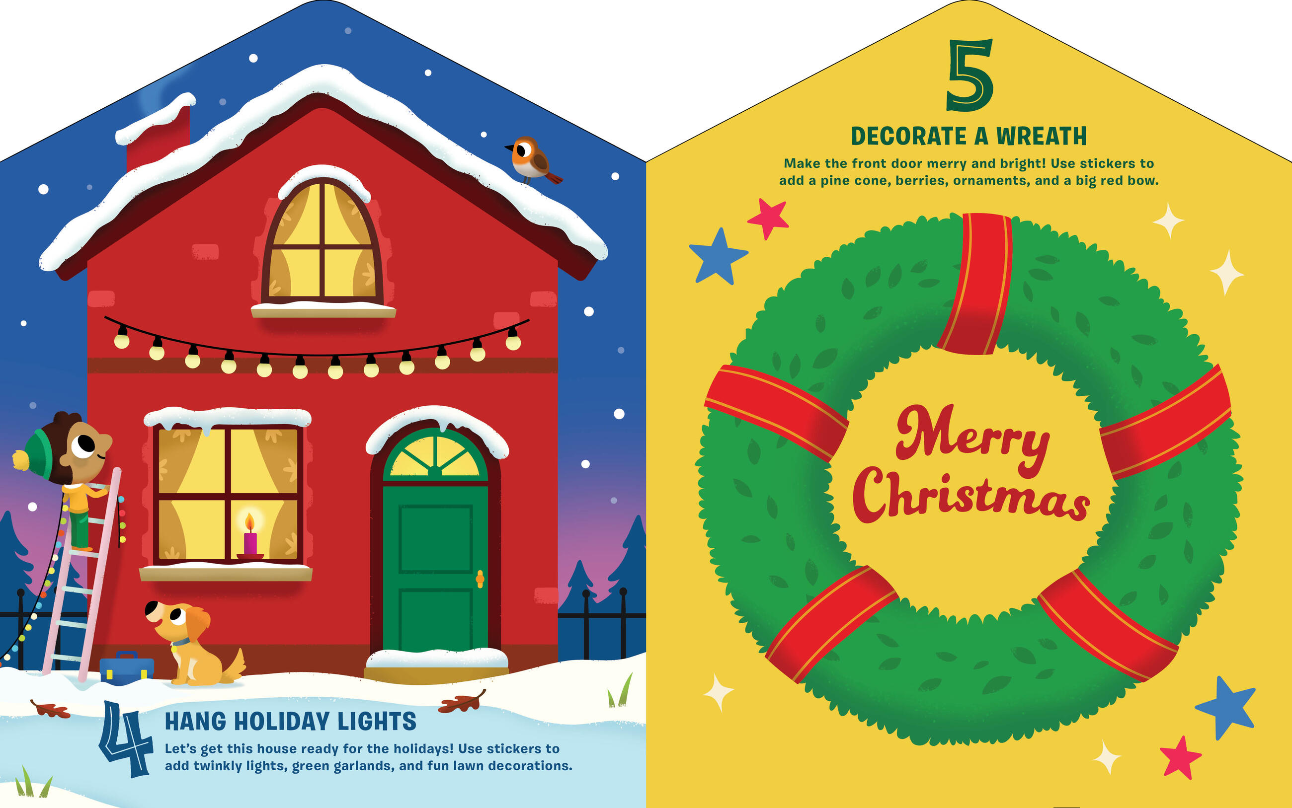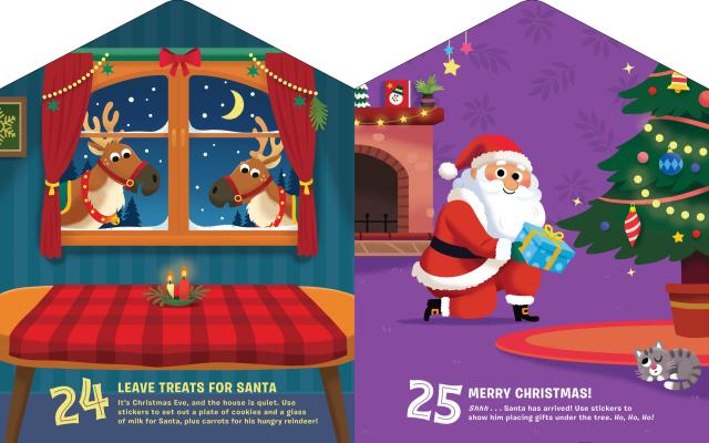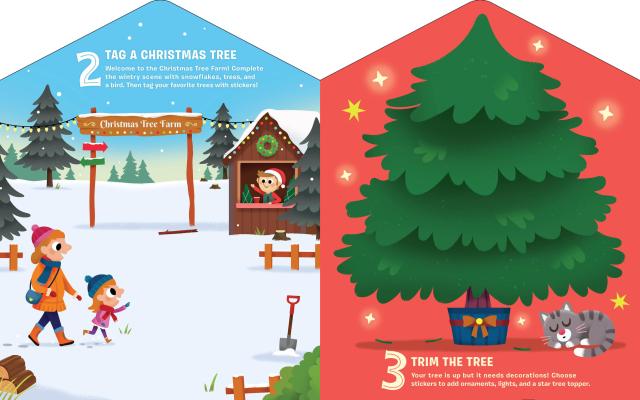 *300 colorful holiday stickers to decorate the scenes, from candy canes to snowmen to holiday ornaments