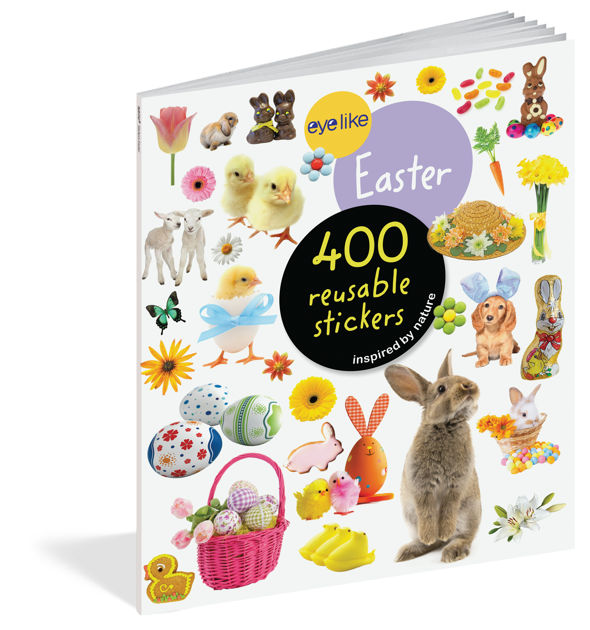 Packed with bunnies, chicks, lambs, eggs, and more, Eyelike Stickers: Easter belongs in every Easter basket and every crafter’s stash. Whether on windows, notebooks, lunch boxes, or scrapbooks, these peel-and-place stickers are perfect for creating your own work of art anytime, anywhere, and are designed to be stuck on, peeled off, and stuck on again without tearing or losing their “stick.” The books’ inside covers are glossy illustrated backgrounds on which kids can create lively and original sticker scenes―and then change them whenever they like.
