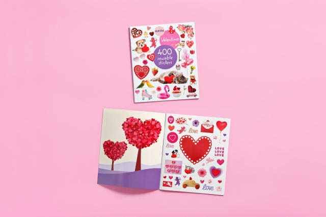 Stuffed with over 400 cute and bright hearts, kisses, and Valentine themed designs, kids can decorate valentine’s day cards, embellish notebooks, and stick on windows to their heart’s desire! These peel-and-place stickers are perfect for creating your own work of art anytime, anywhere, and are designed to be stuck on, peeled off, and stuck on again without tearing or losing their “stick.” The front and back inside covers are glossy illustrated backgrounds for kids to create lively and original sticker scenes―and then change them whenever they like.