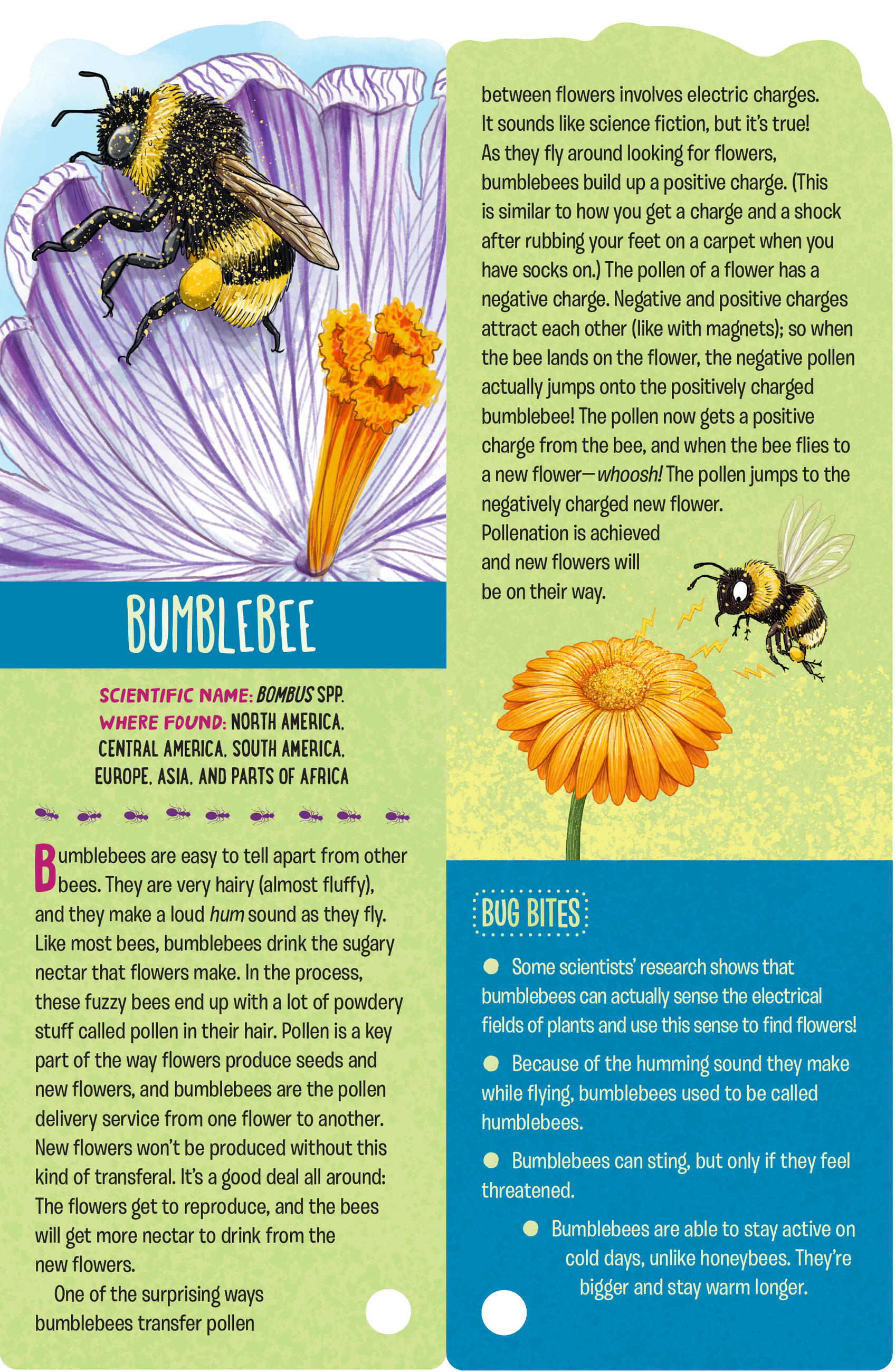 Learn about the bombardier beetle and its diabolical defense mechanism: If attacked, it sprays its enemy with a boiling hot chemical fluid. Or the honeybee, with its impressive ability to pollinate so many of our crops while making that delicious treat: honey. Each card is illustrated in bold, lifelike detail and includes information about the creature’s habits and habitat. And a special “Learning from Nature” section describes how bugs inspire inventions in medicine, engineering, and even programming!