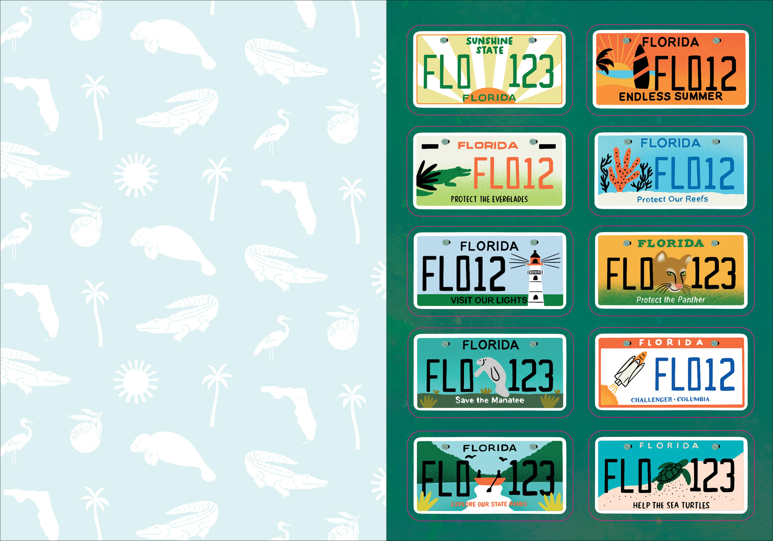 I Love Florida Sticker Book is a beautiful and charming celebration of the Sunshine State. Filled with stickers illustrated by local artist Isabel Serna, this unique sticker book captures all that is iconic about Florida, including locations like the Keys, state parks, and big cities; beloved landmarks like Kennedy Space Center and the Tampa Zoo; food and animals; state symbols; fun phrases (keep Florida weird); and much more.
