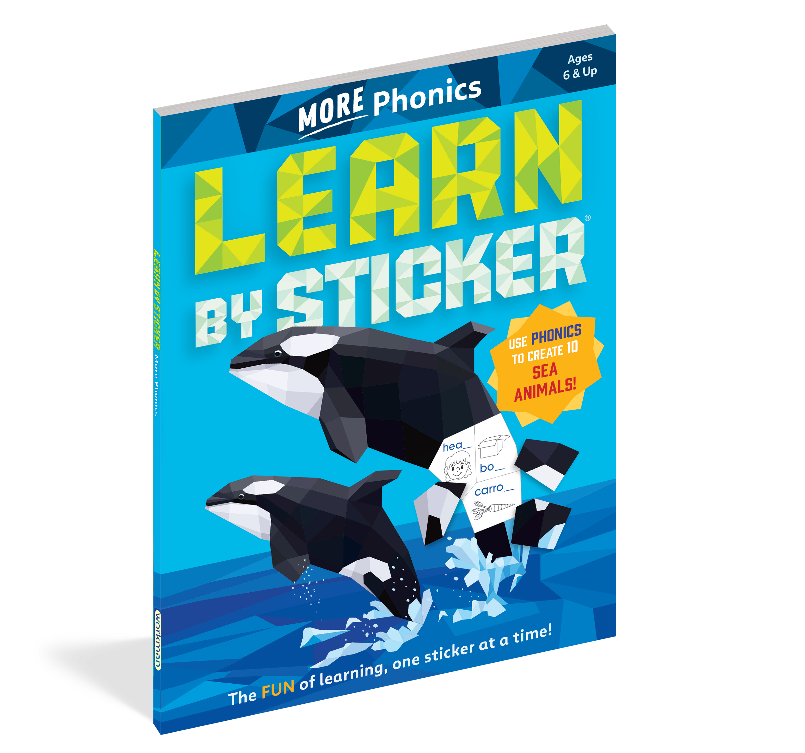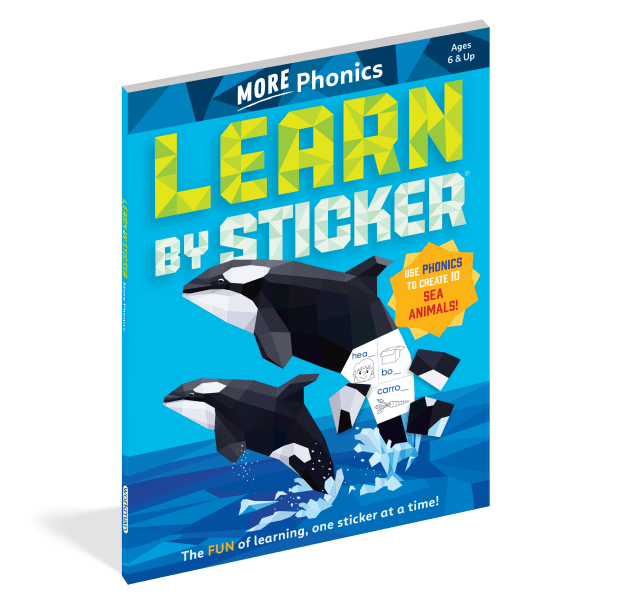 In Learn by Sticker: More Phonics, apply second grade-level phonics concepts (including long vowels, hard and soft sounds, final blends, and more) to complete words and determine where to place each sticker to create ten sticker images of beautiful sea animals. Plus, the back of each sticker page contains fun, phonics-related activities like solving crossword puzzles, decoding secret messages, and more.