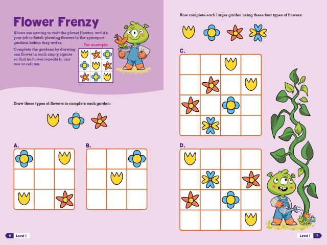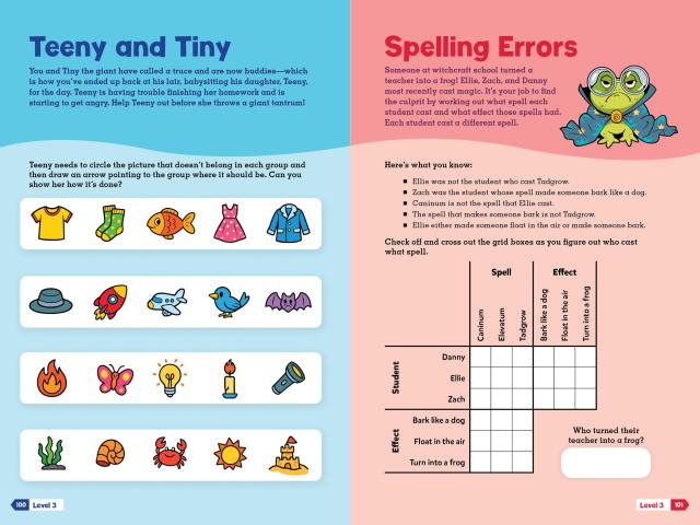 Puzzletopia: 100 Perfectly Puzzling Adventures! is packed with a huge variety of kid-friendly, highly visual logic puzzles, critical thinking activities, picture puzzles, and more. Every activity is introduced with a unique, engaging narrative based on a quest, adventure, or mission—featuring aliens, magical creatures, scalawag pirates, and other colorful characters!